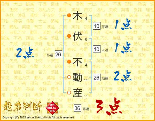 木伏不動産さんの総運は36画の3点!