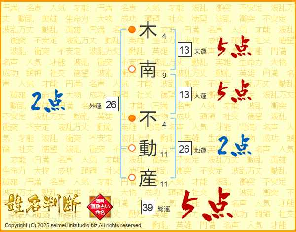 木(4画)南(9画) 不(4画)動(11画)産(11画)