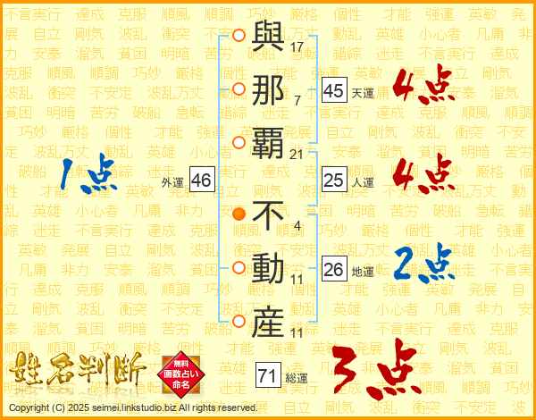與(17画)那(7画)覇(21画) 不(4画)動(11画)産(11画)