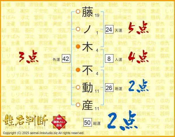 藤(19画)ノ(1画)木(4画) 不(4画)動(11画)産(11画)