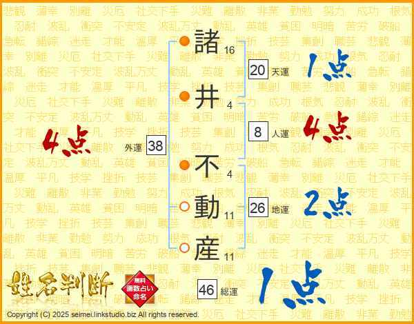 諸(16画)井(4画) 不(4画)動(11画)産(11画)