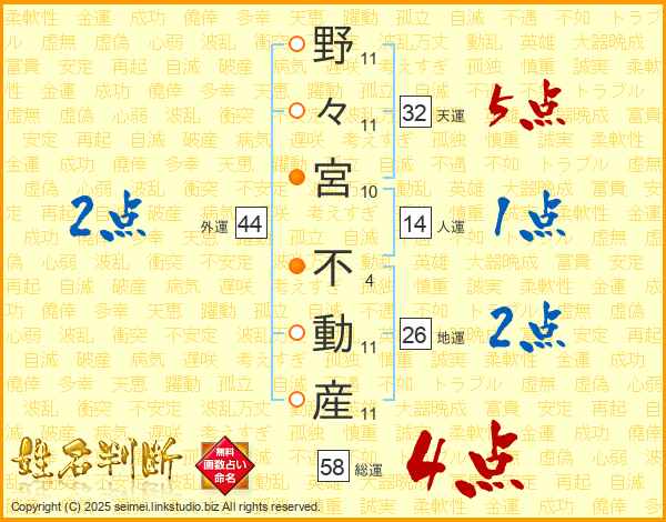 野(11画)々(11画)宮(10画) 不(4画)動(11画)産(11画)
