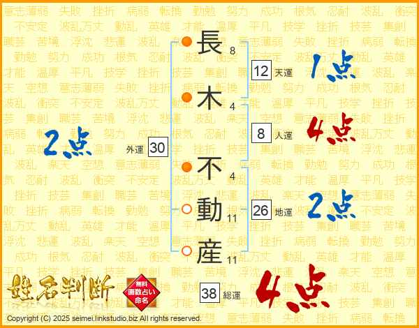 長(8画)木(4画) 不(4画)動(11画)産(11画)