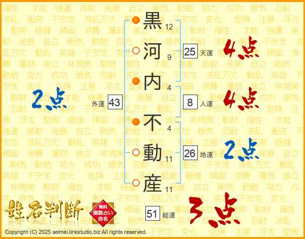 黒河内不動産さんの天運は25画の4点!
