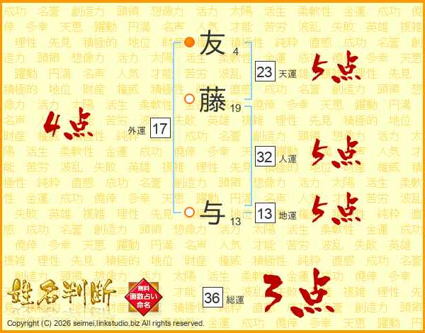 友藤与さんの総運は36画の3点!