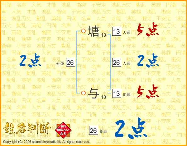 塘与さんの人運は26画の2点!