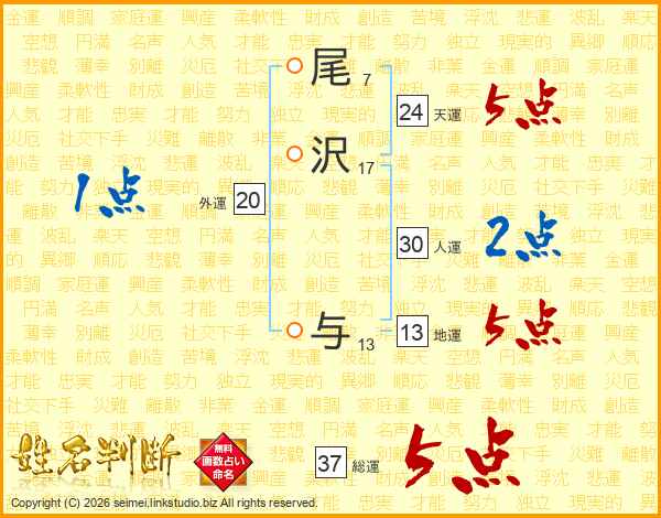 尾沢与さんの総運は37画の5点!