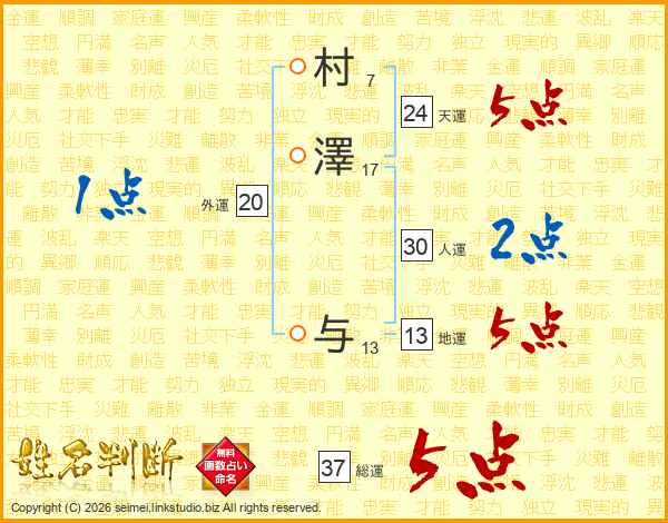 村澤与さんの総運は37画の5点!