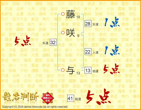 藤咲与さんの総運は41画の5点!