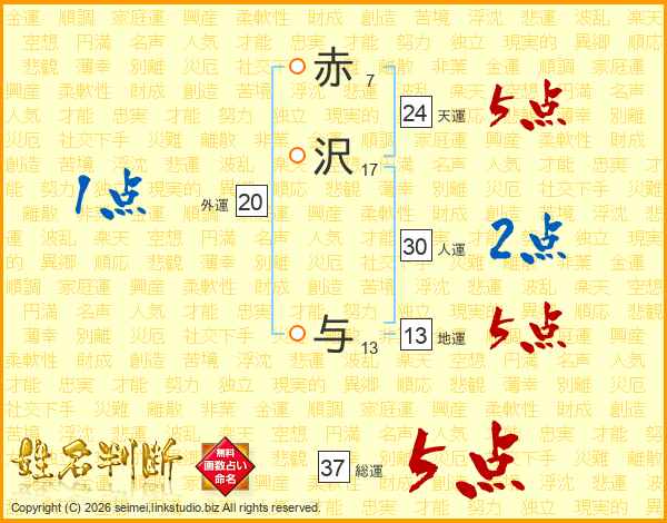 赤沢与さんの総運は37画の5点!