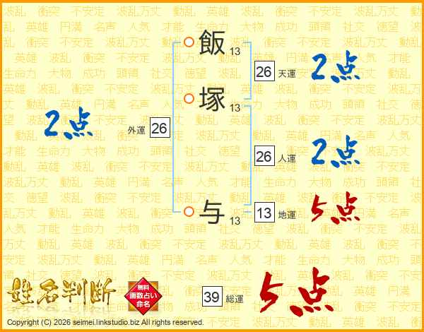 飯塚与さんの天運は26画の2点!