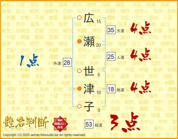 広瀬世津子さんの人運は25画の4点!