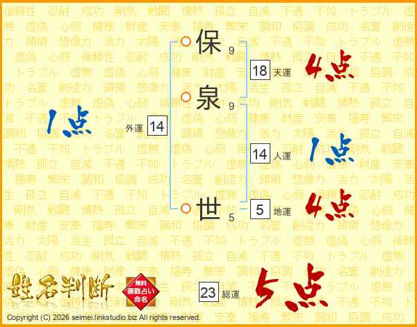 保泉世さんの総運は23画の5点!