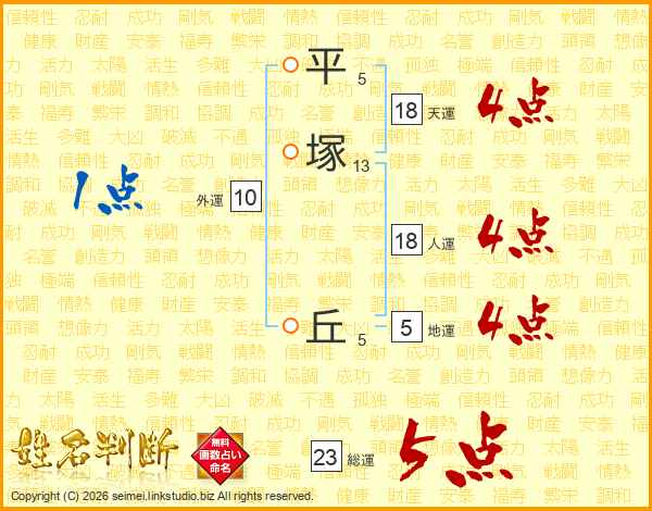 平塚丘さんの総運は23画の5点!