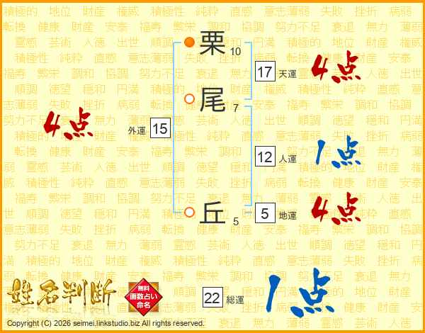 栗尾丘さんの天運は17画の4点!
