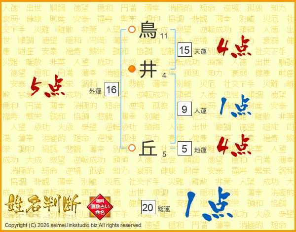 鳥井丘さんの天運は15画の4点!