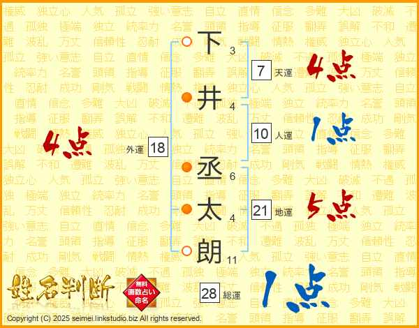 下井丞太朗さんの地運は21画の5点!
