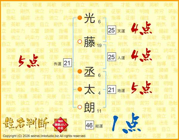 光藤丞太朗さんの人運は25画の4点!
