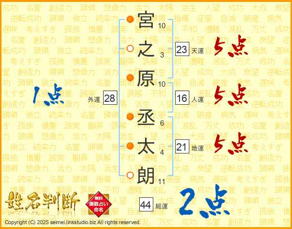 宮之原丞太朗さんの総運は44画の2点!
