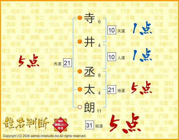寺井丞太朗さんの総運は31画の5点!