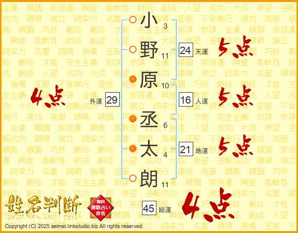 小野原丞太朗さんの総運は45画の4点!
