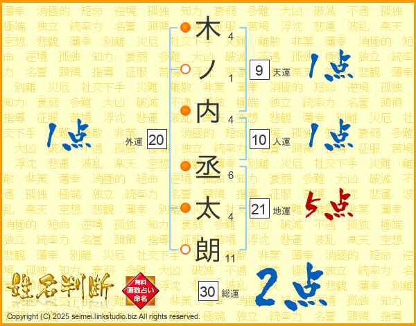 木ノ内丞太朗さんの地運は21画の5点!
