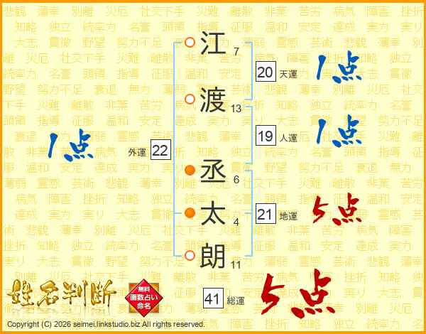江渡丞太朗さんの総運は41画の5点!