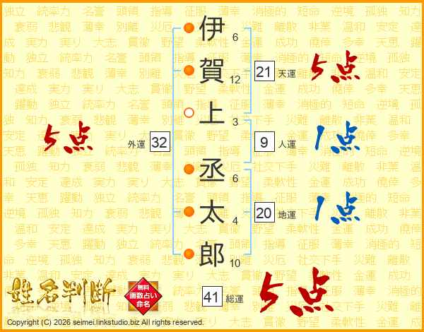 伊賀上丞太郎さんの天運は21画の5点!