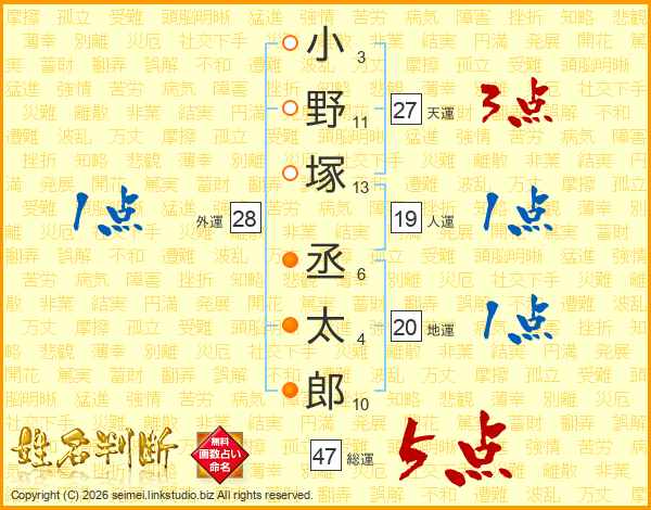 小野塚丞太郎さんの総運は47画の5点!