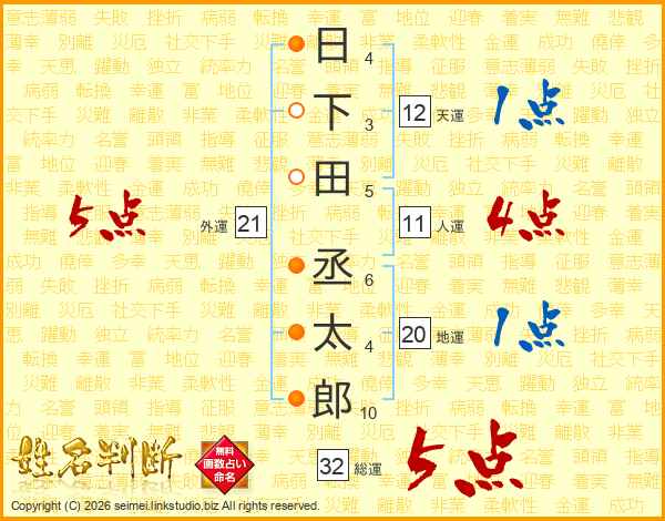 日下田丞太郎さんの総運は32画の5点!