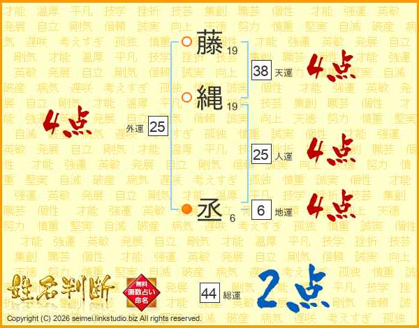 藤縄丞さんの総運は44画の2点!