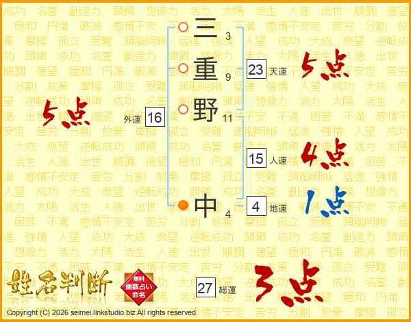 三重野中さんの総運は27画の3点!