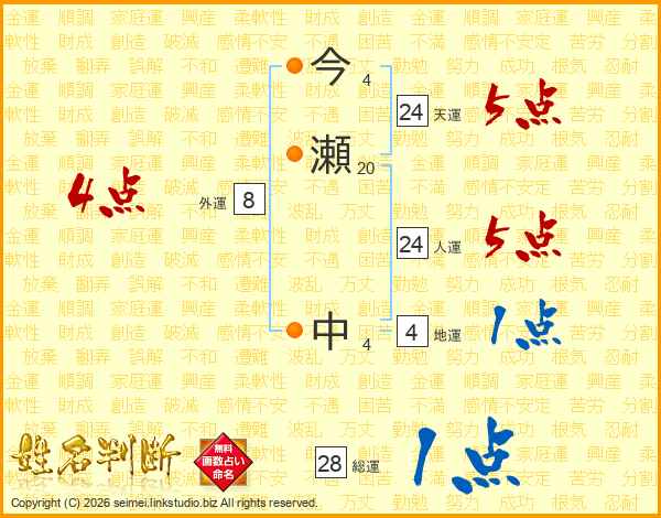 今瀬中さんの人運は24画の5点!