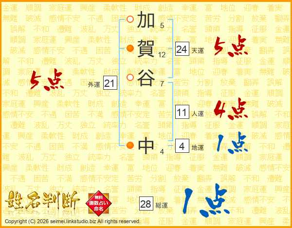 加賀谷中さんの天運は24画の5点!
