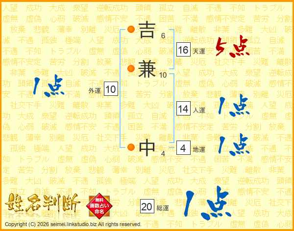吉兼中さんの人運は14画の1点!