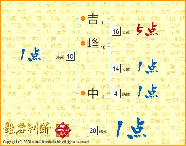 吉峰中さんの人運は14画の1点