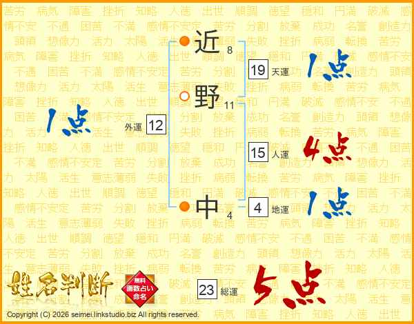 近野中さんの人運は15画の4点!