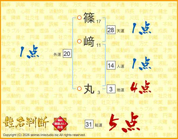 篠﨑丸さんの総運は31画の5点!