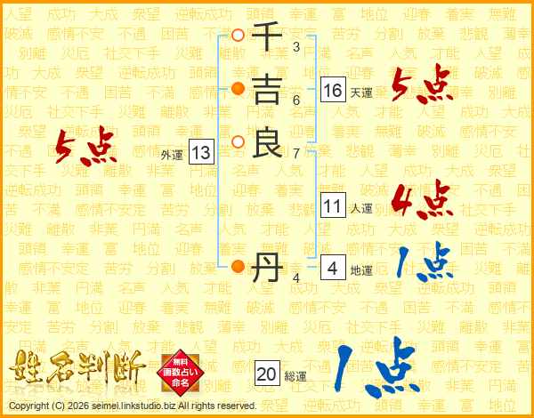 千吉良丹さんの総運は20画の1点!