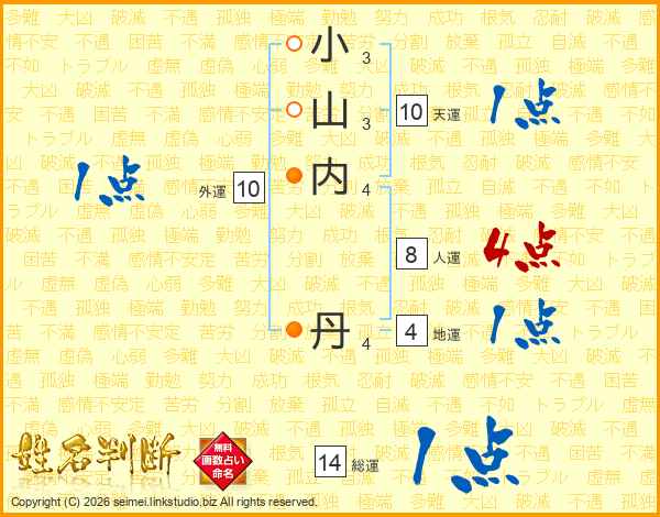 小山内丹さんの総運は14画の1点!