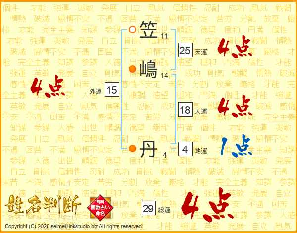 笠嶋丹さんの総運は29画の4点!