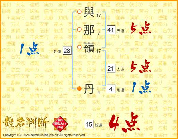 與那嶺丹さんの総運は45画の4点!