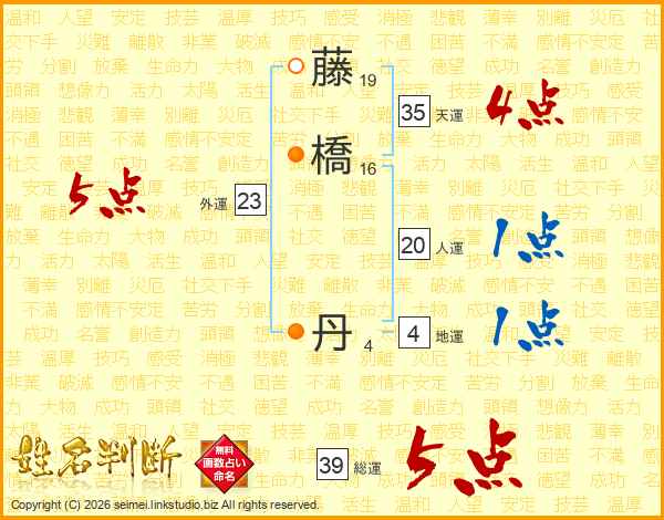 藤橋丹さんの総運は39画の5点!