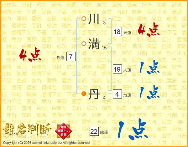 川満丹さんの総運は22画の1点!