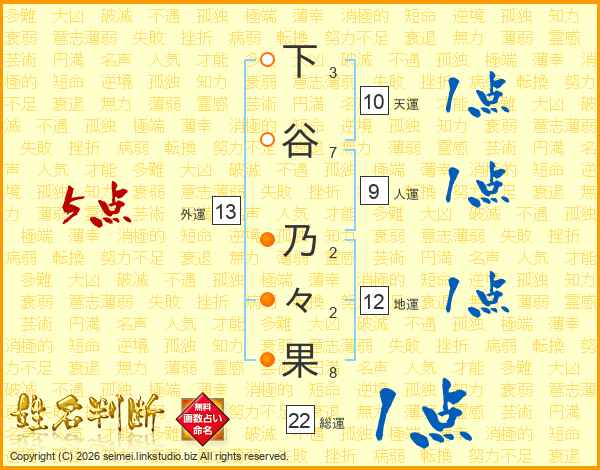 下谷乃々果さんの外運は13画の5点!