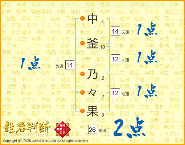 中釜乃々果さんの総運は26画の2点!