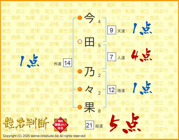 今田乃々果さんの総運は21画の5点!