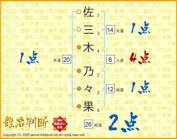 佐三木乃々果さんの総運は26画の2点!