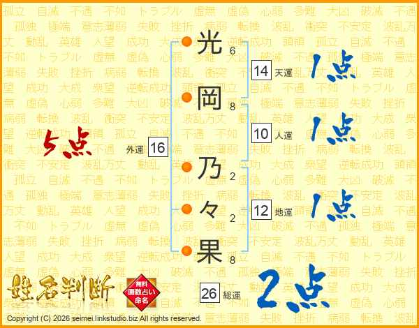 光岡乃々果さんの総運は26画の2点!