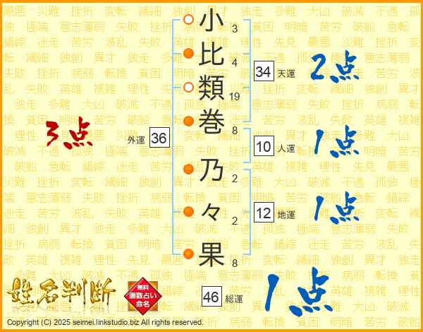 小(3画)比(4画)類(19画)巻(8画) 乃(2画)々(2画)果(8画)